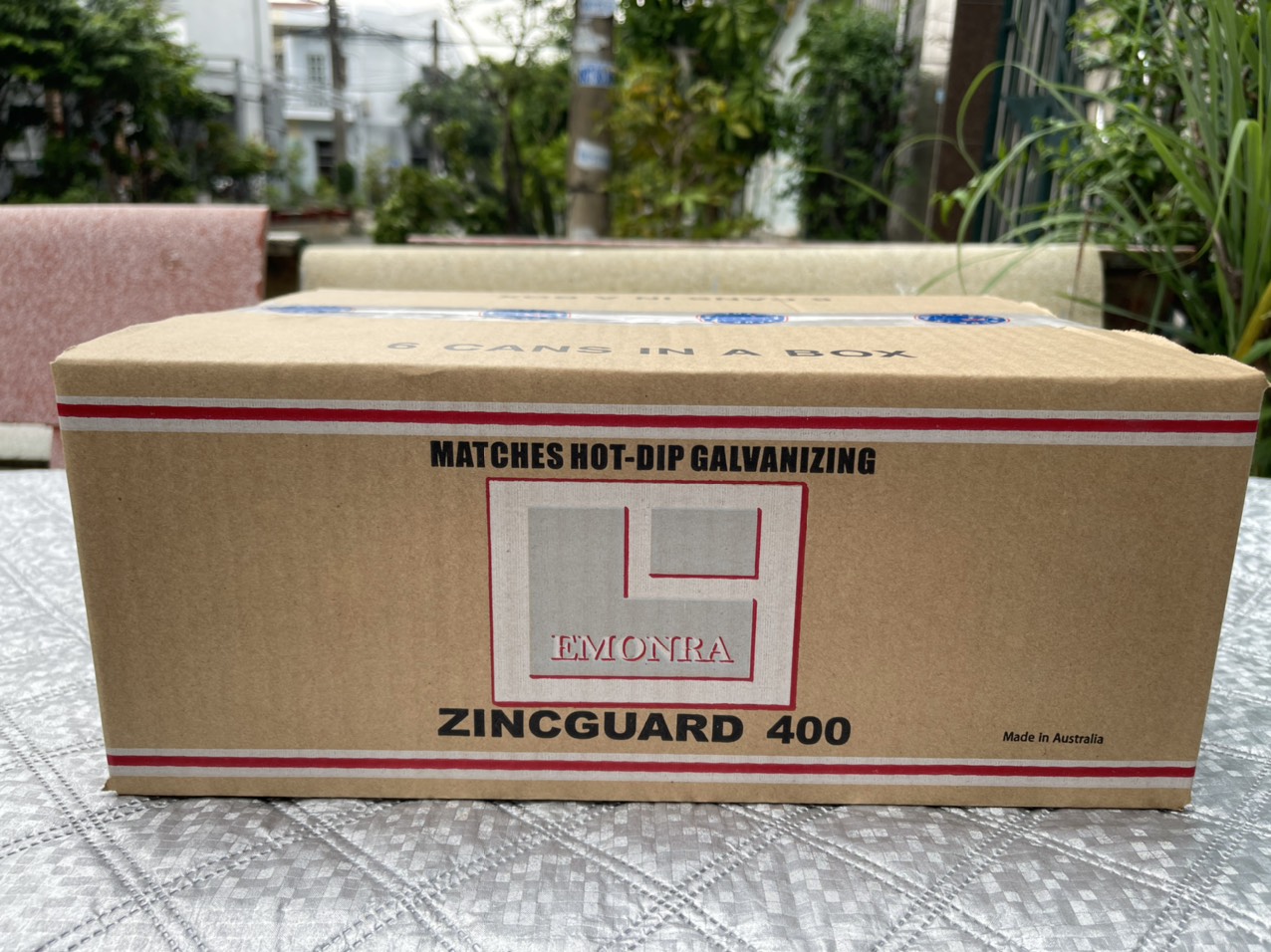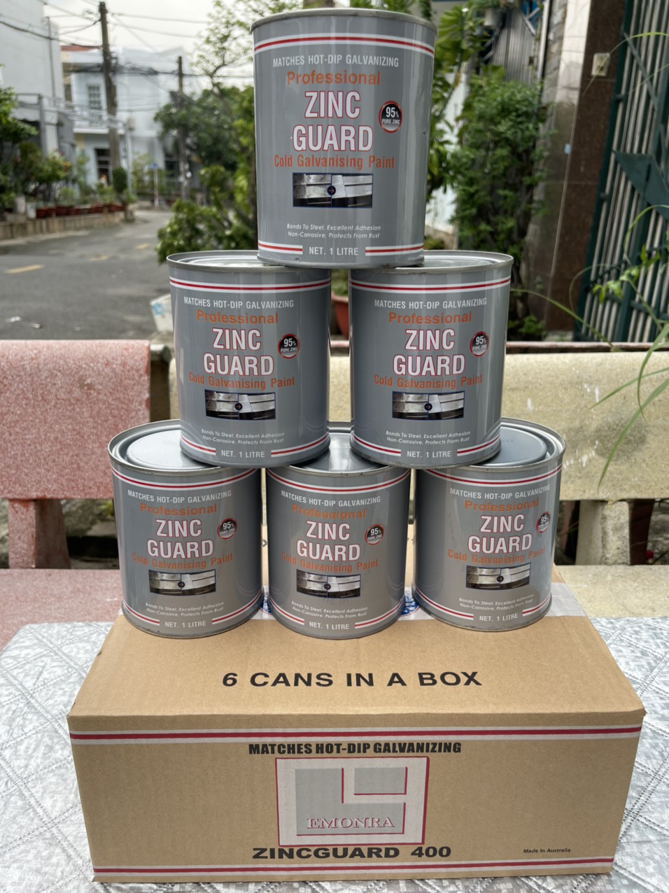 Sơn mạ kẽm lạnh ZG400 (Zinc Guard 400 1Lít) là sơn mạ kẽm lạnh màu kẽm sáng bóng (giống hoàn toàn mạ kẽm nhúng nóng) được đóng gói 1 lít, 4 lít và 18 lít, nhập khẩu trực tiếp từ Úc (EMONRA). Sản phẩm được chứng nhận Quartest 3 về hàm lượng kẽm sau khi khô đạt 95% (tiêu chuẩn ASTM) cung cấp chức năng chống ăn mòn điện hoá, đáp ứng điều kiện chống ăn mòn cao như nước biển và hoá chất. Ứng dụng rộng rãi trong việc sửa chữa lớp mạ kẽm (như hàn và cắt kim loại) theo tiêu chuẩn ASTM A780, chống rỉ sét, tái tạo bề mặt lớp mạ kẽm và sơn bề mặt đã mạ kẽm.